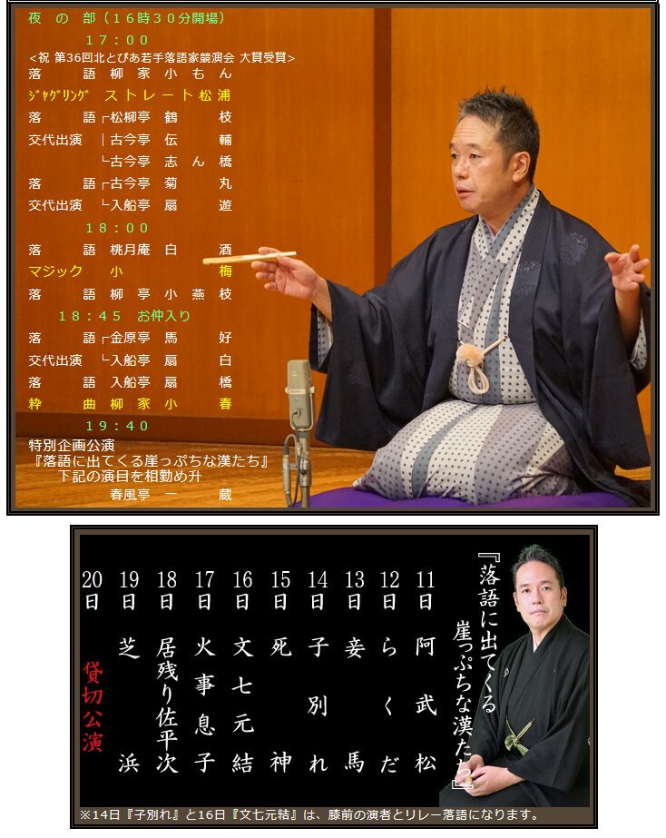 11月中席 鈴本演芸場 夜席(春風亭一蔵師匠主任興行)