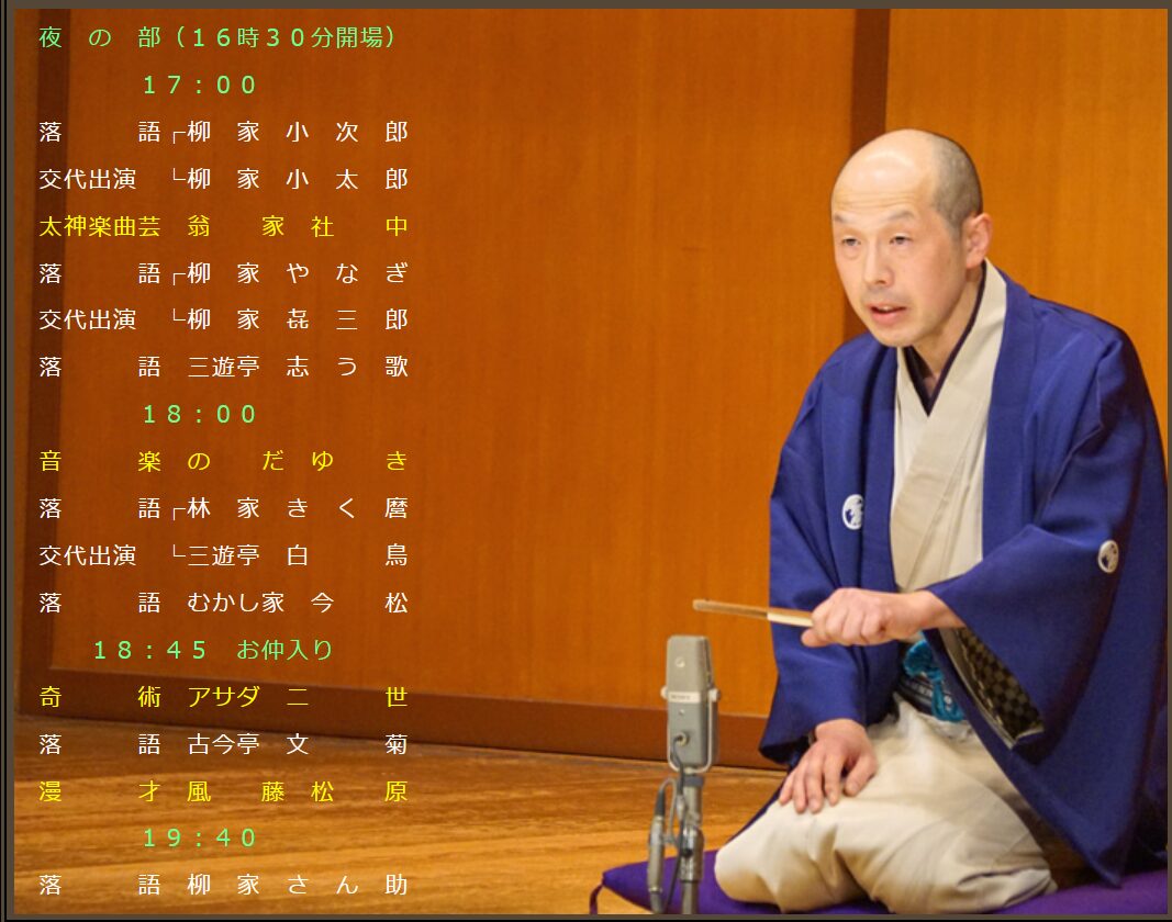 【番 組】いつもだいたい3席(これまでの傾向です。当日変わる可能性もあります)